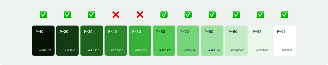 With the new brand color being light emerald green, ensuring each primitive token meet WCAG color contrast ratio was crucial.
