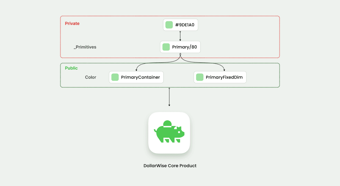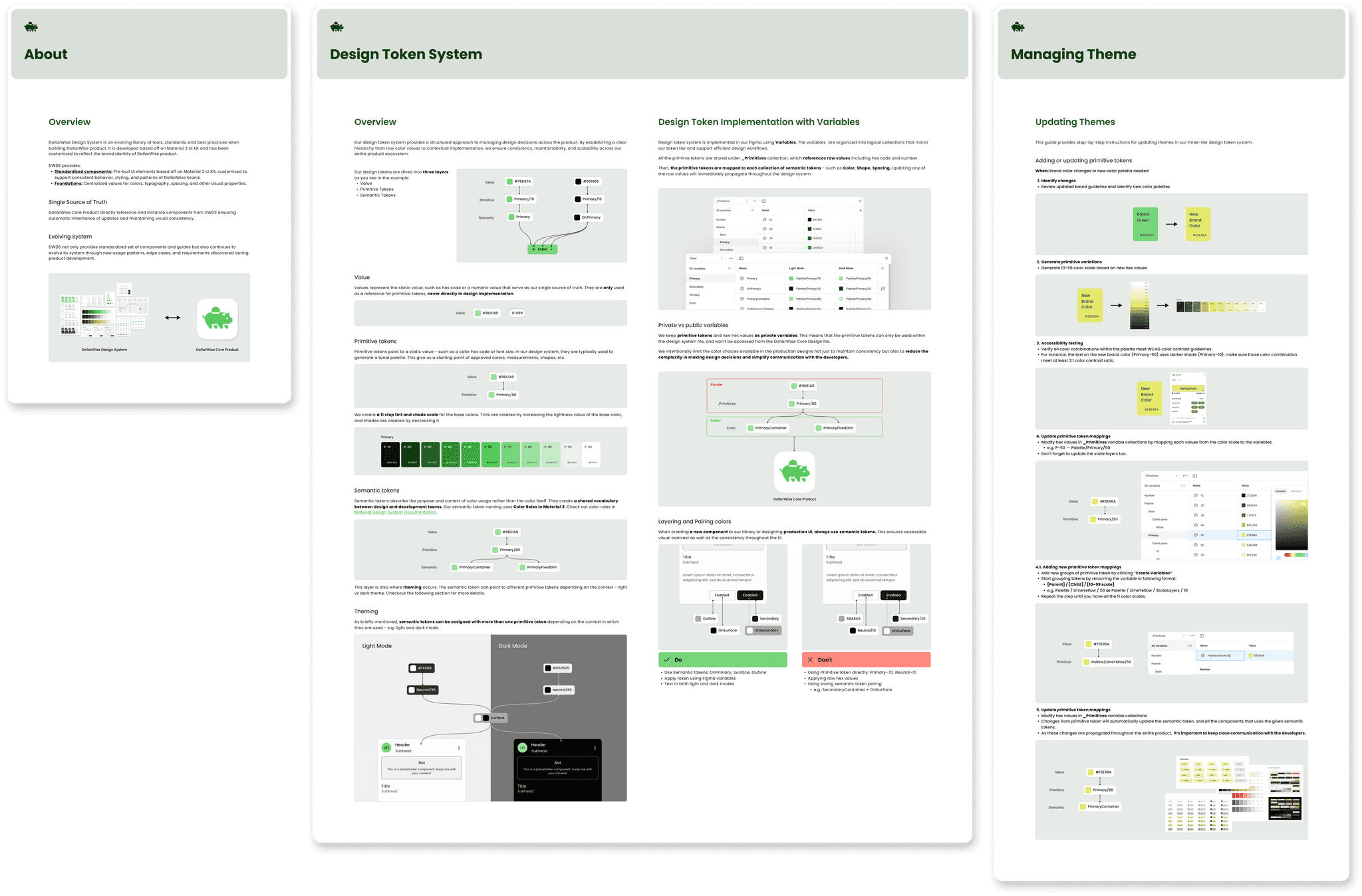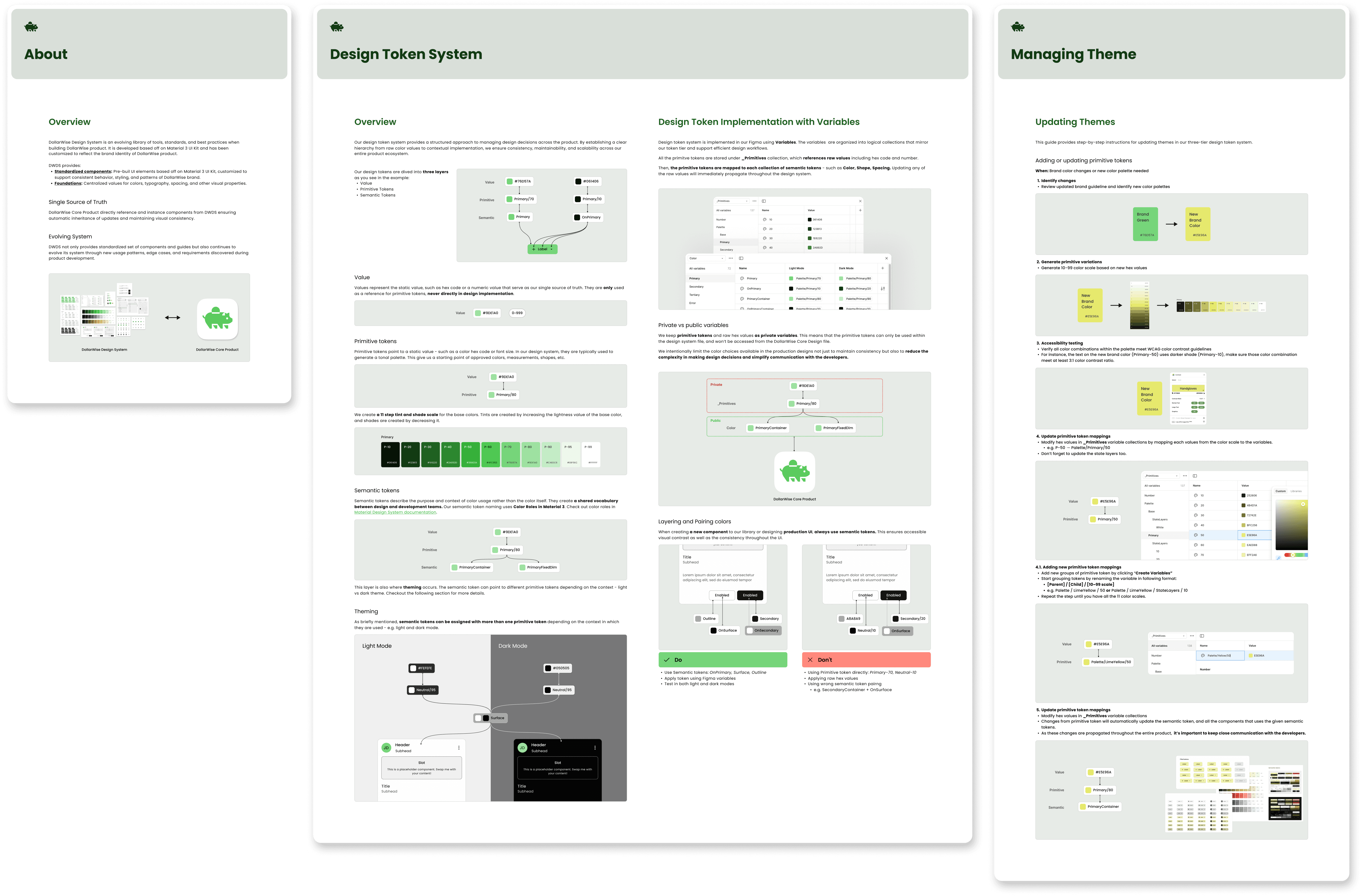 I have also visual-oriented documentation so that everyone could understand how tokens are structured within DollarWise Design System.